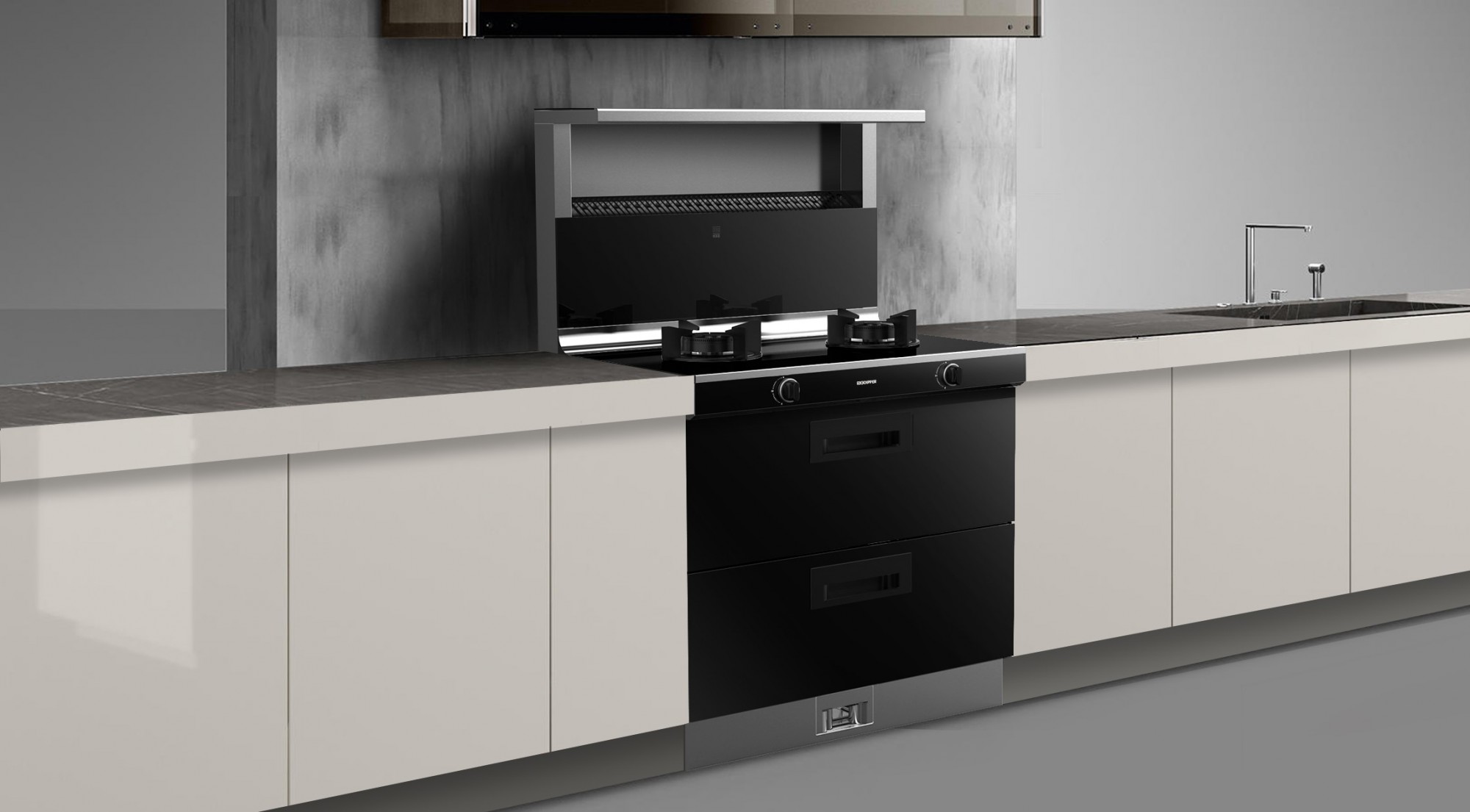 北斗星C2采用三合一設(shè)計,吸油煙機+燃?xì)庠?消毒柜,將置物、吸煙、烹飪、消毒、換氣等功能完美融為一體,有效節(jié)約廚房空間。
