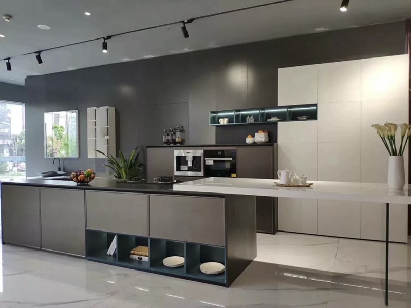 “斜拉式的門頭招牌設計,可以吸引不同角度的客戶。開放式的產品展示方式,讓消費者一進店就被吸引住。”北斗星這家居門店,258㎡的店面分為集成灶展示區、櫥柜區、水槽區、洽談區。整體設計以現代簡約風格為主,混搭新中式、美式風格,呈現出北斗星高級沉穩的輕奢的氣質。