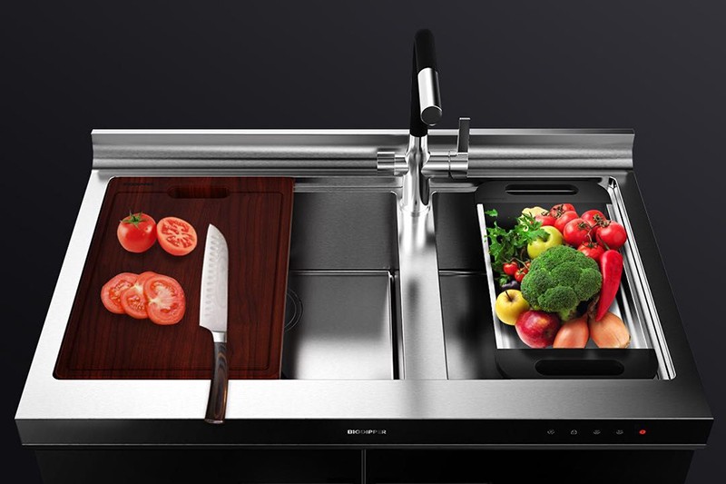 上層“濕”區域為清洗+切配+瀝水三大基礎功能,給家庭提供一個日常活動空間。