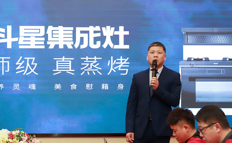 在2021開年之際,北斗星重磅推出了今年首款重磅蒸烤一體產品:“大師級·真蒸烤”A5 集成灶。本場開春戰役啟動會,北斗星市場部長胡文貞上臺為大家做了產品培訓報告。這次作為講解對象的產品是A5蒸烤一體集成灶,詳細介紹該系列具有的“大師級”、“真蒸烤”、“黑科技”等系列賣點,是廣大高端人群的不二之選。這樣一份系統并完整的產品介紹,對經銷商們了解產品性能和優勢有極大的幫助,讓他們在銷售產品的時候更有競爭力和說服力。