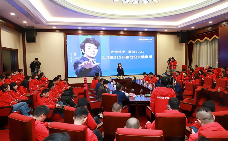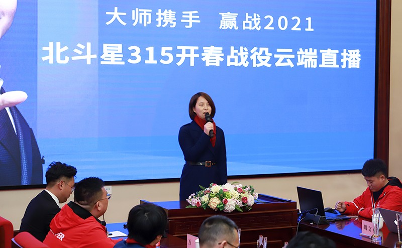 北斗星總經理楊曉英攜公司經營團隊、營銷中心全體員工以及全國加盟商相約直播間,共同探討行業發展趨勢,部署2021年營銷規劃。本場啟動會,因疫情防控需要,在云端進行線上直播,開啟北斗星315開春戰役啟動大會,激情筑夢,實現價值。