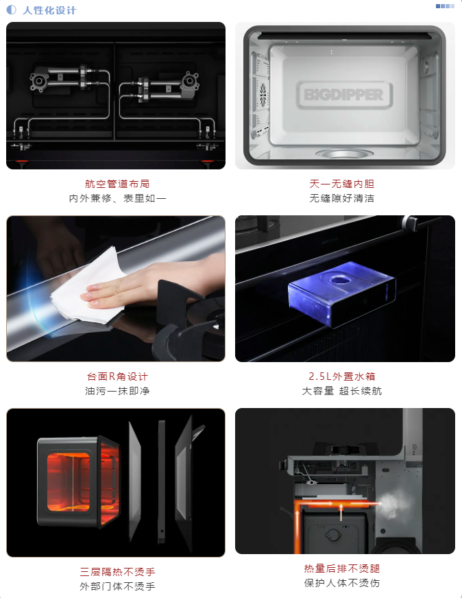 與此同時,北斗星C7BZK配備了6蒸6烤6輔的18種蒸烤模式,蒸、烤、煨、燜、燉、煮,貼合中式家庭烹飪習慣,輕松駕馭繽紛美食。立體加熱循環烤,最高烤溫可達230℃,全腔均溫,肉質嫩滑多汁,烤色均勻誘人。智能精準控溫,一鍵開啟大廚滋味,是真正實用的品質之選。