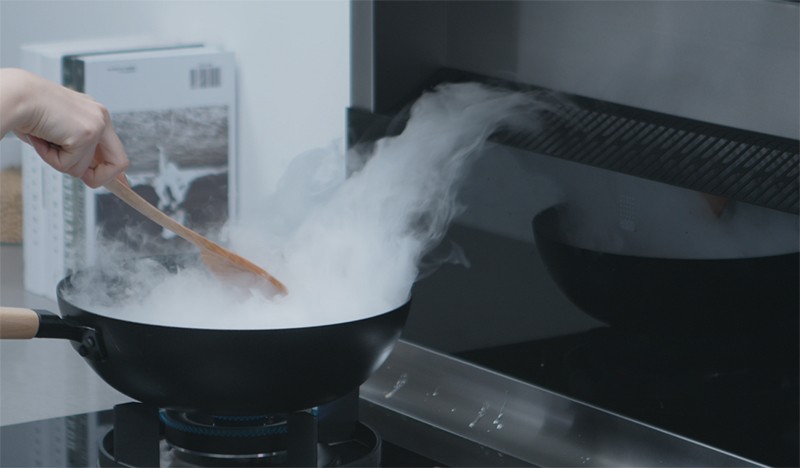 抽油煙機一般是安裝在頭上,是把油煙聚集到頂部。但是,集成灶采用側(cè)吸下排的方式,運用微空氣動力學(xué)原理,利用下沉空氣施壓形成負壓區(qū),把油煙聚集到底部被吸走。采用這種方式,油煙的吸凈率甚至超過99%。