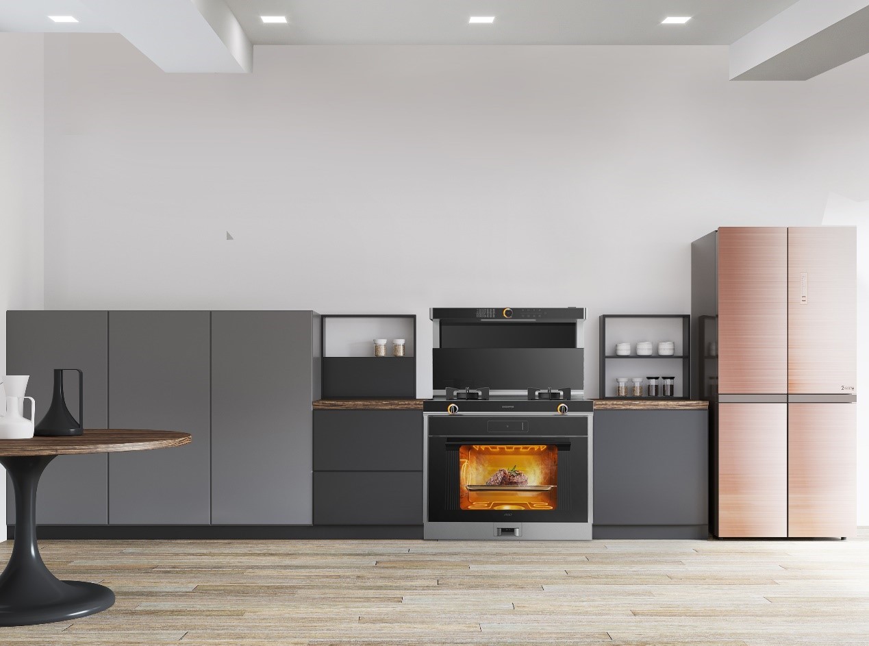 集成灶是個多功能結(jié)合的廚具,有油煙機,烤箱,儲藏柜,蒸箱,燃氣灶等等,比起老式三件套,特別節(jié)省廚房空間