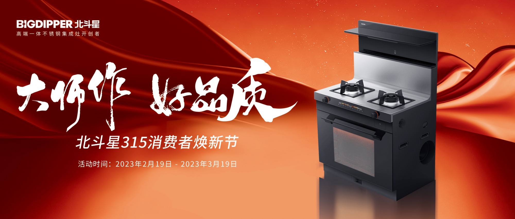 2月19日-3月19日,北斗星315消費者煥新節(jié)來啦!大師作 好品質(zhì),get 你家的實力&顏值并存新廚房。此次北斗星315消費者煥新節(jié),有哪些看點?讓我們一睹為快吧