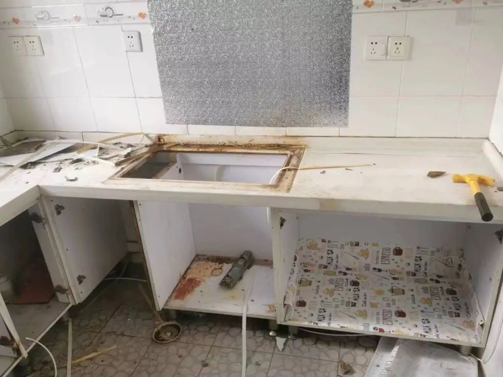 于是這家用戶找到了我們,北斗星主打的72小時(shí)煥新,無需搬家服務(wù)讓他十分滿意,希望北斗星能給他一個(gè)干凈整潔的廚房。于是我們第一時(shí)間去到了用戶家里進(jìn)行量房,設(shè)計(jì)完成后便開始了拆除的工作。